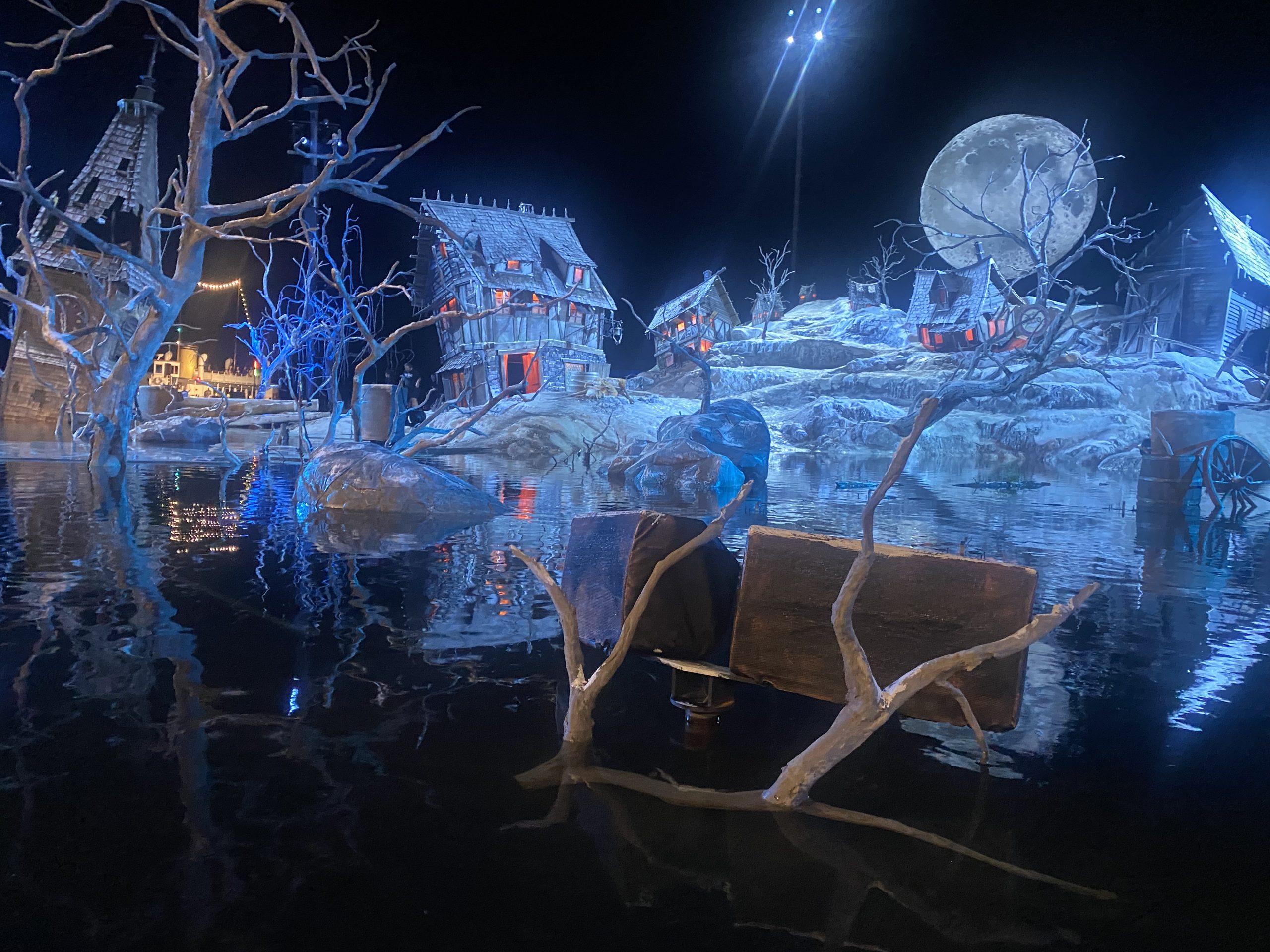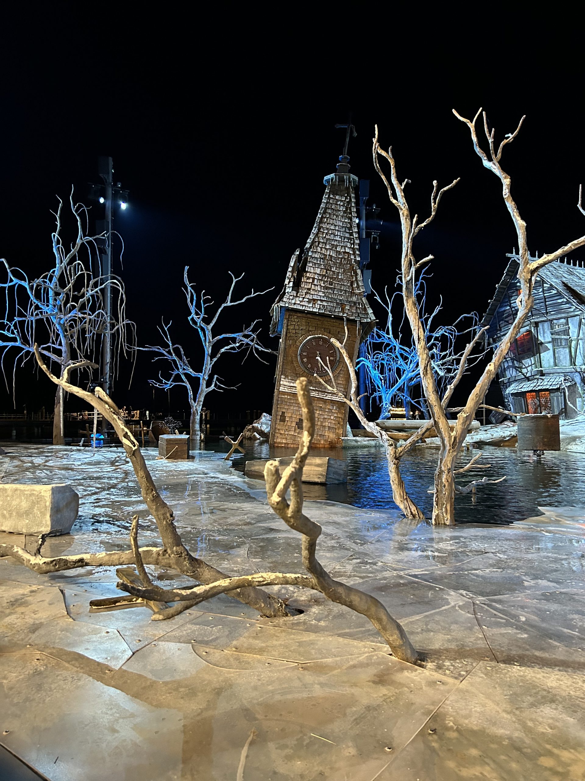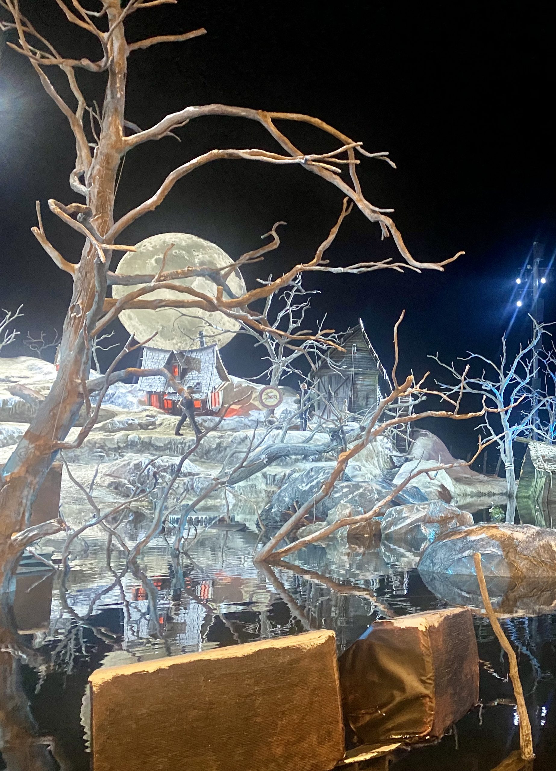 Das Bühnenbild irgendwo zwischen düsterem Horrorfilm und dem Albtraum eines Innenarchitekten mit Hang zu Nebelmaschinen.
