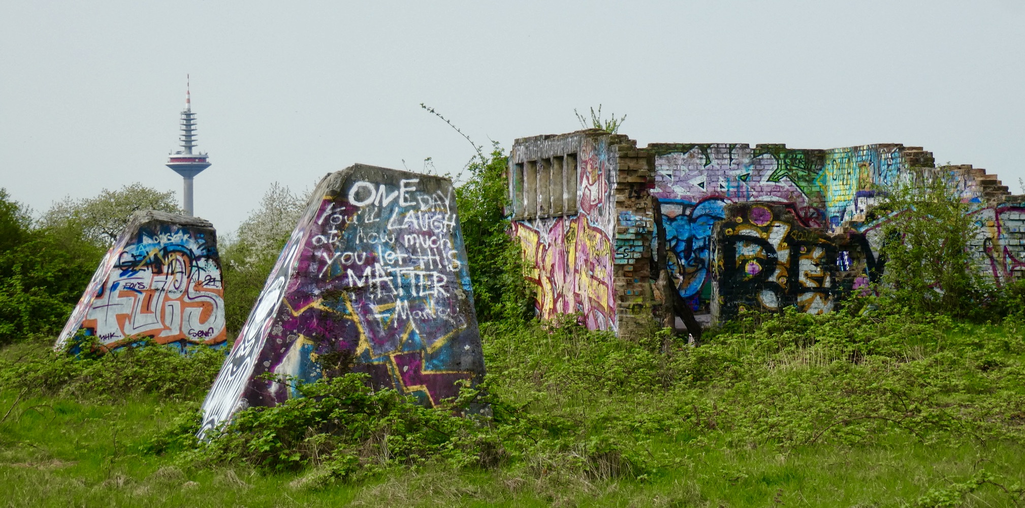 Neben den beeindruckenden Aussichten auf die Frankfurter Skyline und den Taunus verleihen die teilweise von wilden Rosen überwucherten Ruinen und Betonfundamente des Senders dem Ort eine geheimnisvolle Aura. Sie sind zudem von teilweise originellen Graffiti verziert.