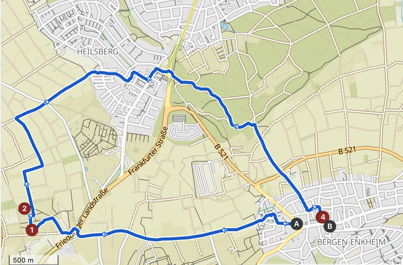Der Heiligenstock erhielt seinen Namen vom kleinen mittelalterlichen Bildstock, der neben dem Gasthaus „Altes Zollhaus“ an der Friedberger Landstraße steht. Teile des Geländes gehören heute zu den Streuobstwiesen im Frankfurter Grüngürtel, den die Bergen Enkheimer Social Walkers gerne in alle Richtungen durchstreifen.